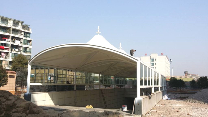 膜材料具有的阻燃性和耐高溫性,能很好地滿足防火要求;膜結構屬柔性結構,能夠承受很大的位移,不易整體倒塌;膜結構自重輕,抗震性能比較好。